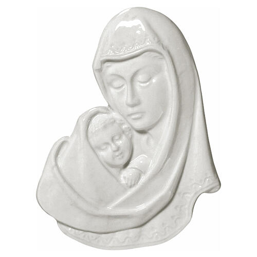 Virgin Mary with Child white enamel wall plaque for outdoor use 18x13 cm