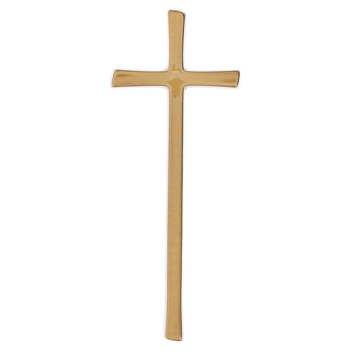 Thick outdoor bronze wall cross. A simple, convex wall grave cross with a protective surface finish. The cross features clean, essential lines in the form of a Latin cross with a domed profile and rounded edges, suitable for mounting on stone surfaces. The protective finish allows outdoor use, ensuring resistance to the elements and long‑term stability. The rear is prepared for wall mounting with anchoring pins to facilitate installation. Available sizes: 20 x 8 cm, 30 x 12.5 cm, 40 x 16 cm, 50 x 20 cm. Made in Italy by a historic artistic foundry with a long tradition in bronze casting for monuments, stone decorations and durable liturgical objects. Each cross is produced through a sequence of manual processes that create a unique, authentic Made in Italy artifact.