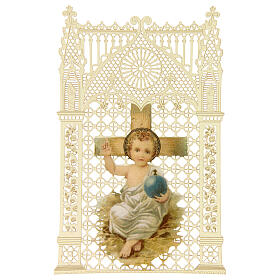 In this category, you will find high-end, collectible holy cards. Made from fine materials such as cotton fiber paper, these prayer cards are embellished with lacy decorations that recall the tradition of ancient holy cards. Each piece in the Prayer cards Collection is entirely made in Italy, combining advanced technology with the craftsmanship of local artisans. In addition to serving as personal devotional items for Holy Cards collectors, these pieces make meaningful gifts for special occasions. Their quality also makes them suitable for display as decorative pieces in the home or in places of worship.
