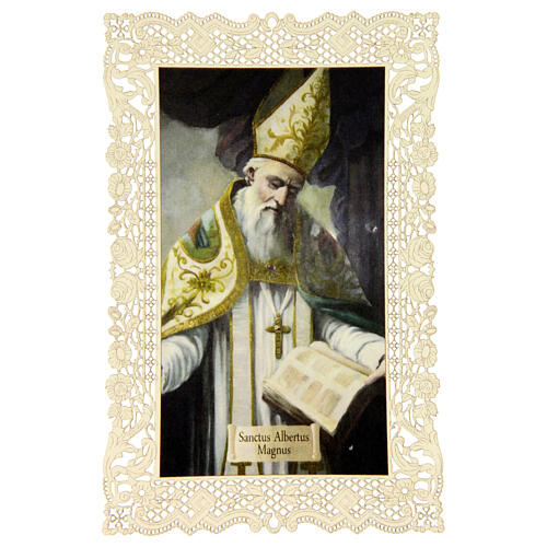 Holy Card of Saint Albert the Great with lace decor, 11x7 cm