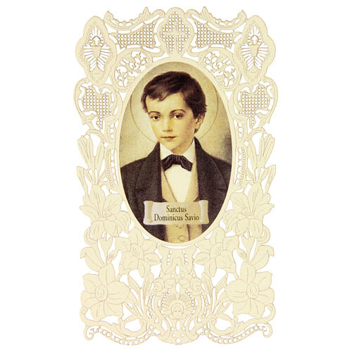 Holy Card of Saint Dominic Savio with lace decoration, 11x7 cm