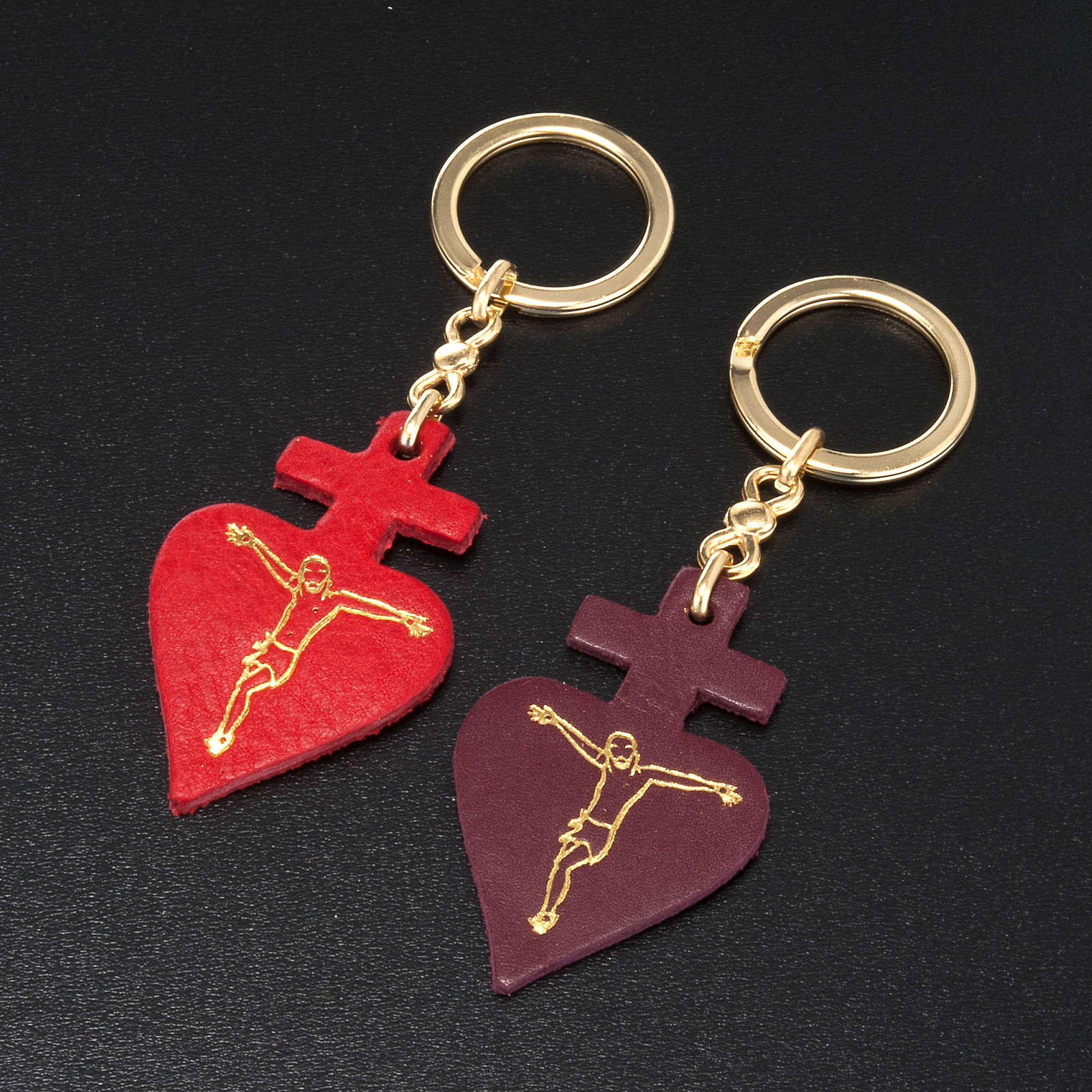 Key ring with a leather heart. The heart features a Corpus and the sentence 'Sant'Antonio da Padova' hot printed in gold. This key ring is completely hand crafted in Italy.