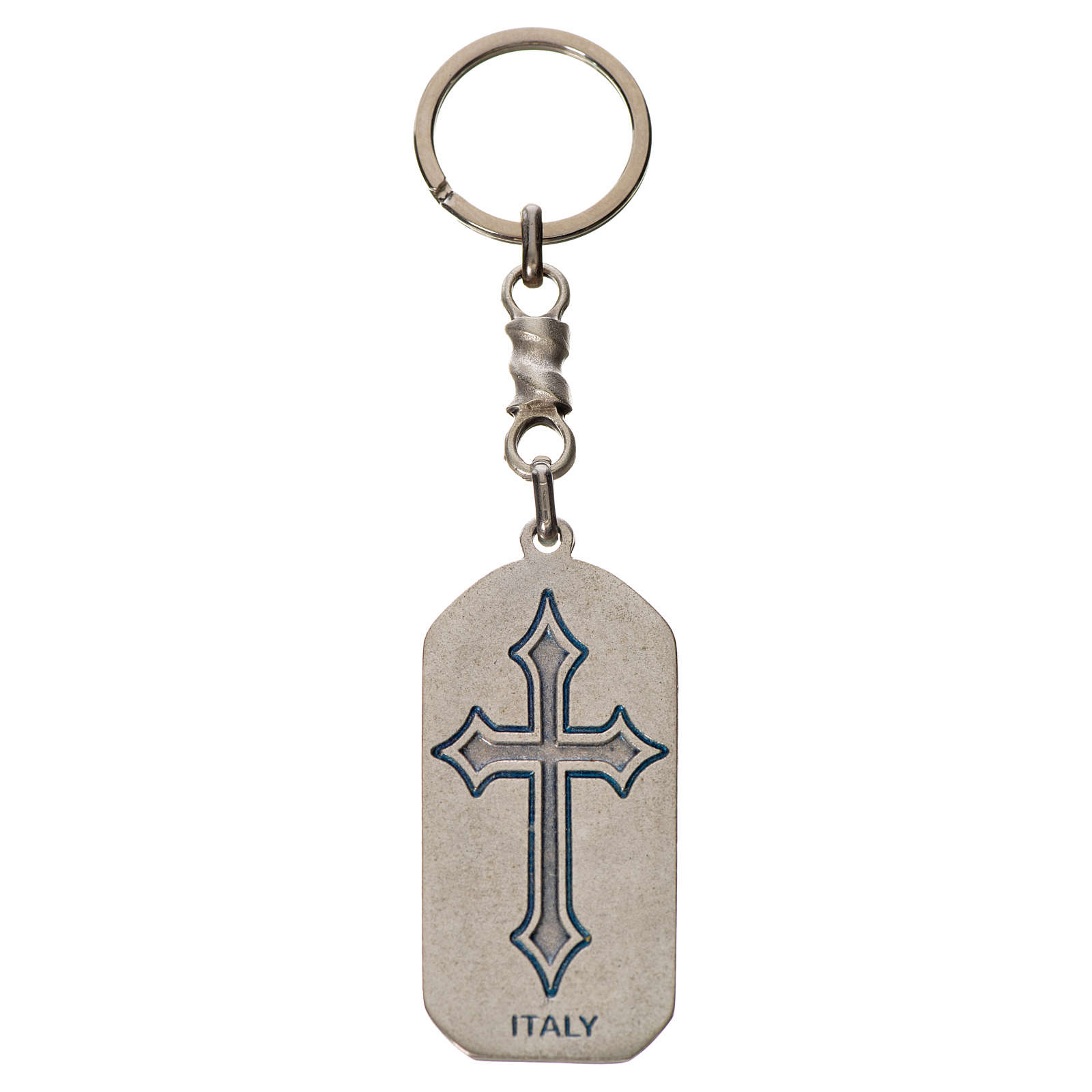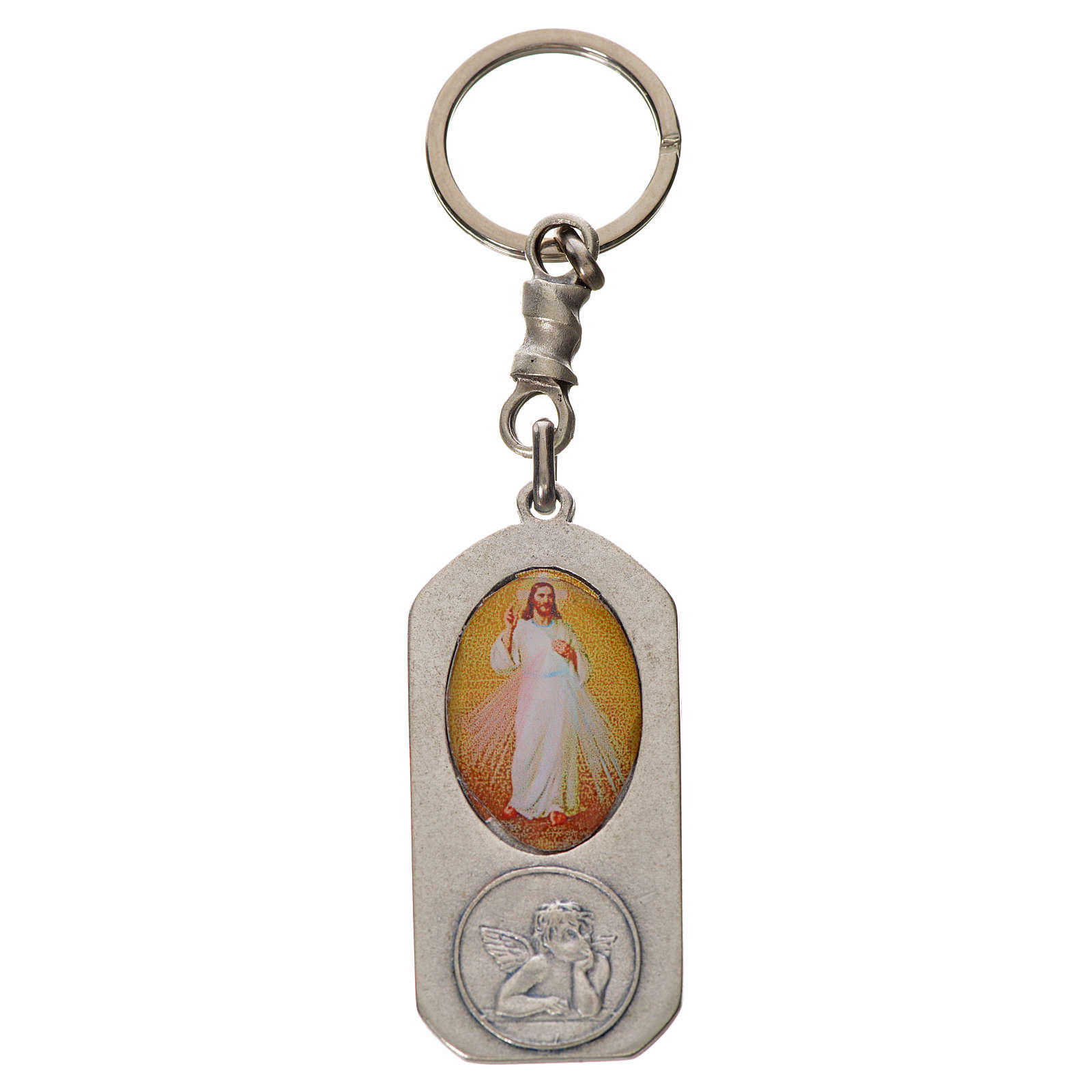 Keyring in zamak with Jesus image measuring 5.2x2.5 cm.