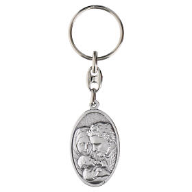 Oval Holy Family and Holy Spirit Keychain 4.5 cm Silver-Plated Zamak