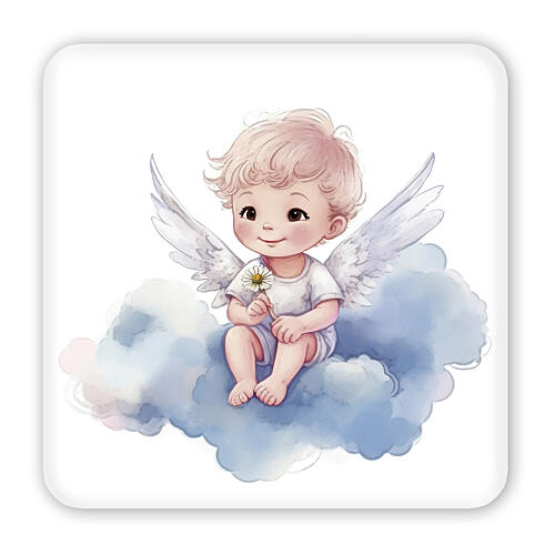 Wooden picture of little angel with flower and gift box, 10x10 cm. This delicate wooden picture is handcrafted with gently rounded corners for an elegant and safe look. The image of the little angel is enhanced by glossy embossed effects, allowing the picture to harmonize with any environment and create a soft, enchanting atmosphere. Every detail has been carefully finished to evoke feelings of peace and protection. Presented in a gift box, it is an excellent option for a special gift and includ...