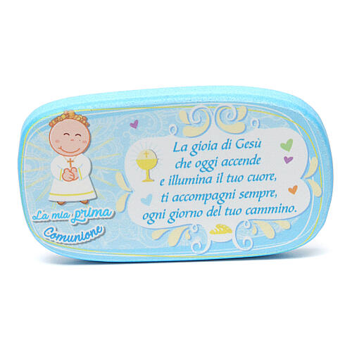 Handcrafted wooden magnet, with joyful design and First Communion celebratory phrase.Packaged in a jute bag, it is perfect as a party favor for this important day. 100% made in Italy.