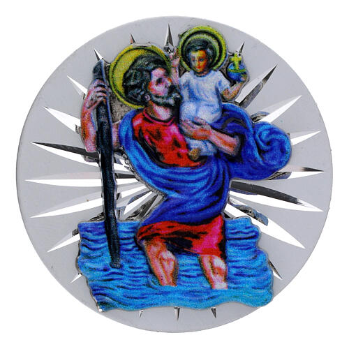 St Christopher magnet with round aluminum, 4 cm