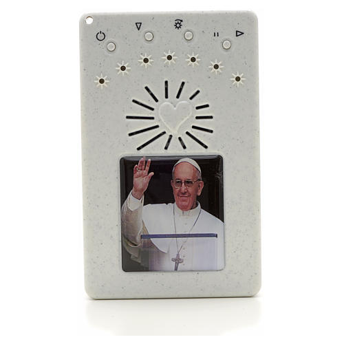 Electronic white rosary with Pope Francis saying hello and divine mercy chaplet