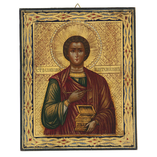 Painted icon of Saint Panteleimon Russia from the 19th century 20x15cm.This orthodox icon dates back to the 19th century and is made with egg tempera on wood. It depicts St Panteleimon, born in the 2nd century AD. in Nicomedia.Panteleimon, after becoming a doctor, attracted the attention of the priest Ermelao, who taught him that it was positive to cure bodies, but to cure souls and save them was also possible.San Panteleimon is the patron saint of doctors, together with Cosma and Damiano, and o...