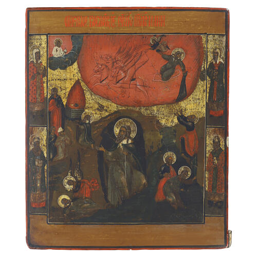 Russian icon Ascent into Heaven of the Prophet Elijah, 19th century, 34x29 cm