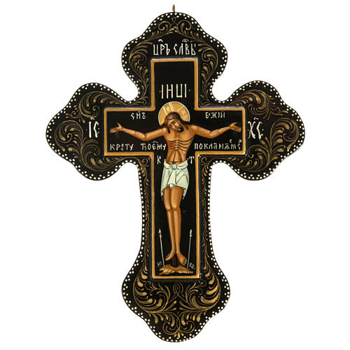This cross is a miniature, hand made in Mstjora, one of the Russian schools of iconography close to the ancient Russian capital VLadimir.