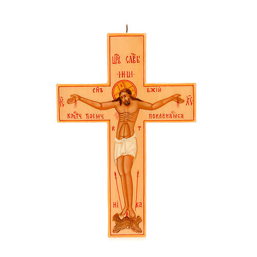 The Orthodox cross is a miniature entirely hand-made in Palech, one of the most famous icon schools. The support is made of papier-maché, soaked in oil and undergoing a special treatment. The miniature undergoes 7 lacquering processes.