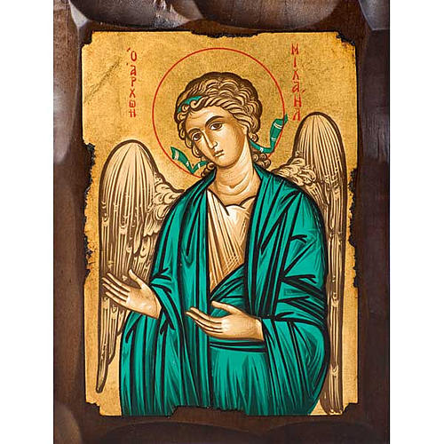Saint Michael the Archangel Greek icon. Silk-screen printed image on wood, manufactured in Greece. Icon depicting Saint Michael, Mi Ka El means the one who is like God, Michale is the king of angels, the protector of Israel and the one who will win against evil.