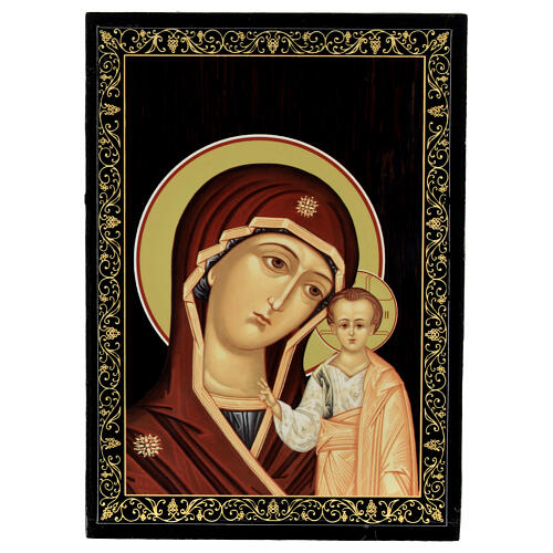 - Russian lacquer icon box Lady of Kazan paper mache 14x10 cm