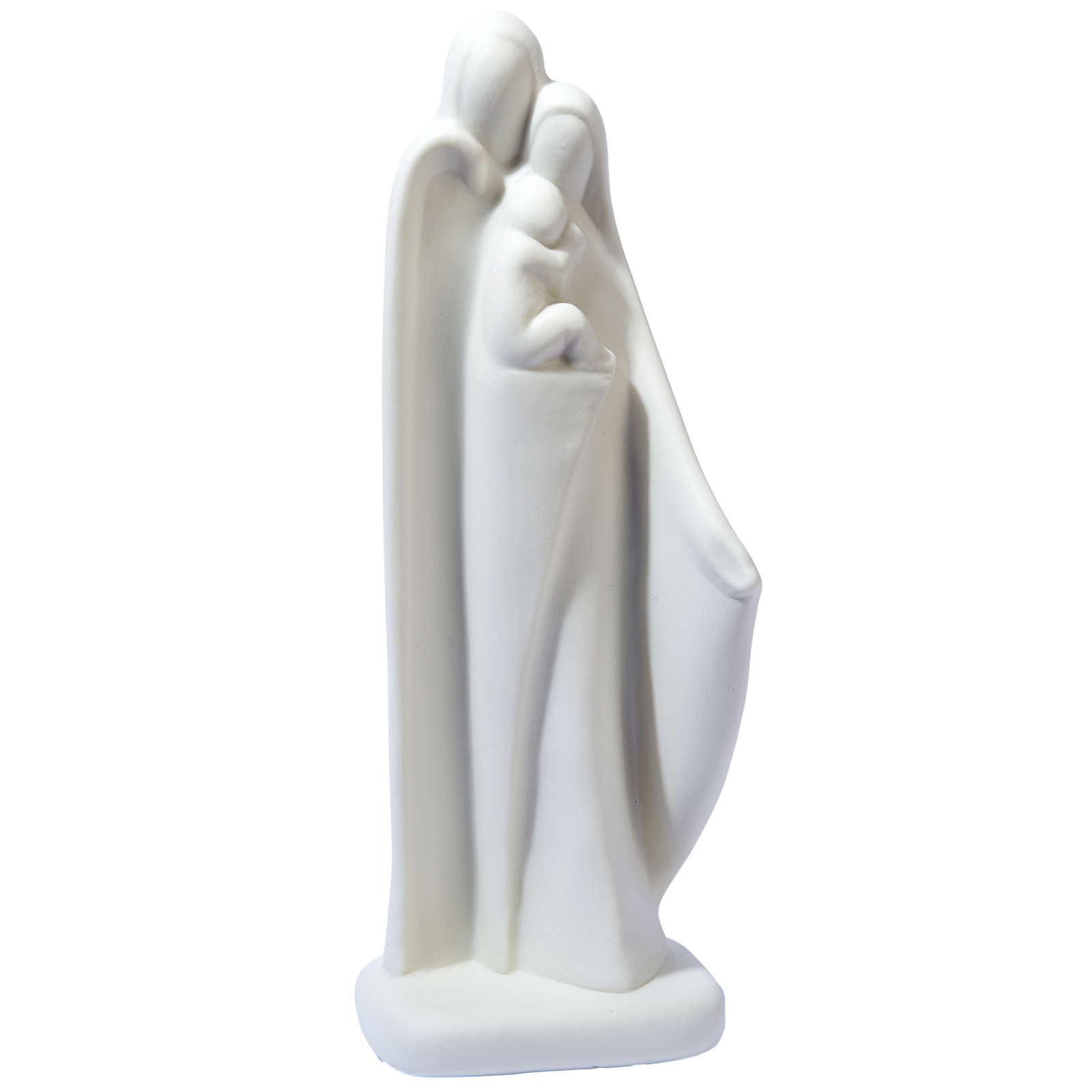 Small statue in white porcelain reproducing the Holy Family with open arms, a work of art by Francesco Pinton.
