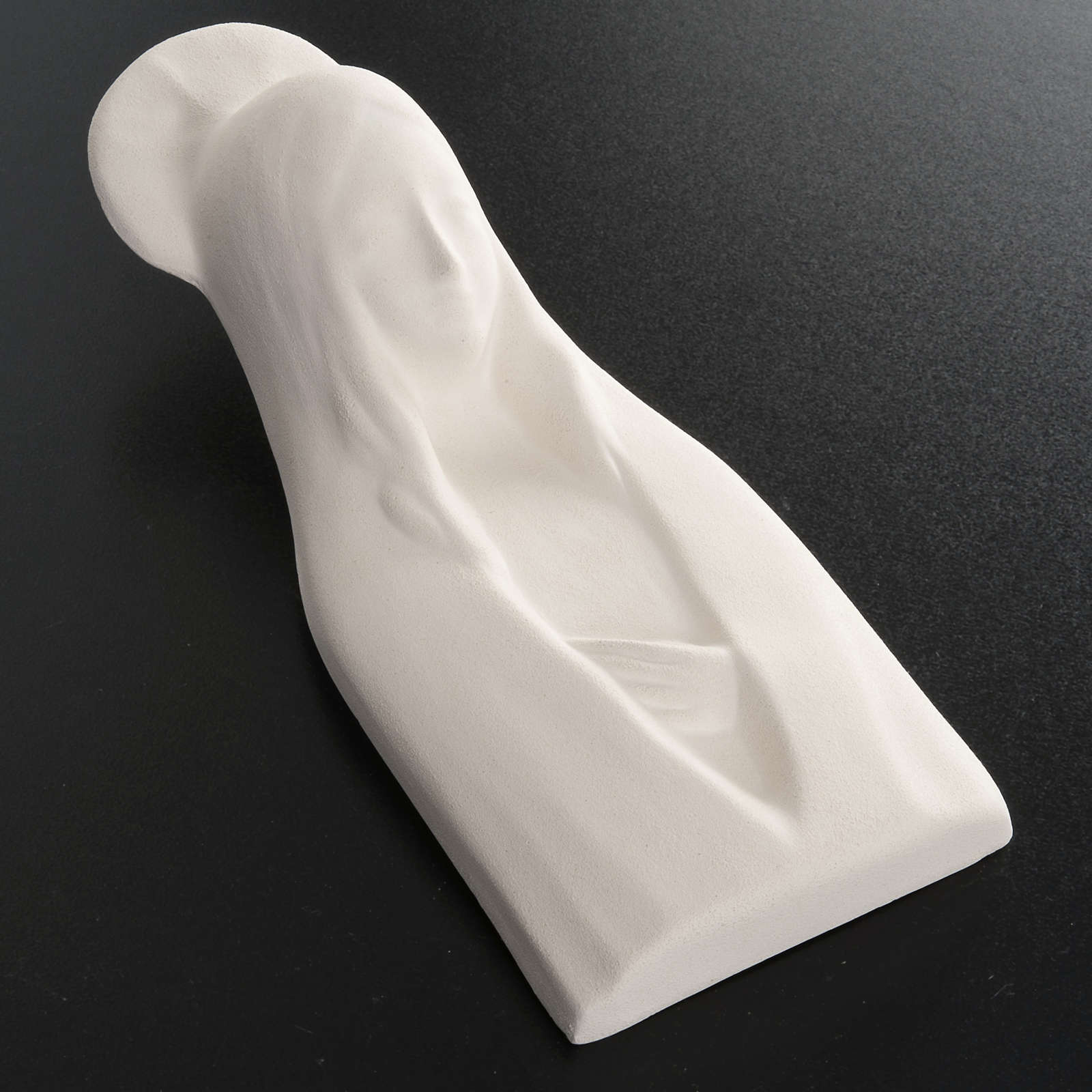 Stylized statue in fireclay reproducing Virgin Mary annunciation. This statue is firstly hand worked, then baked at more than 1000° degrees and hand finished.