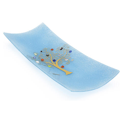 Blue Murano Glass Murrine Trinket Tray with Tree of Life, 5x15x30 cm